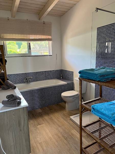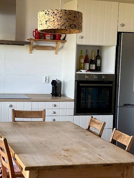 Ferienhaus The SummerHouse : ideal für eine Familie mit 2 bis 3 Kindern. 2 Schlafzimmer mit jeweils 1 Doppelbett (& ev. extra (Baby) Bett), geteiltes geräumiges Badezimmer mit WC, Waschbecken, Dusche und Badewanne. Handtücher vorhanden, auch Strandtücher. Wohnzimmer: gemütliche Sitzecke mit TV & Internet, voll ausgestattete Küche (Kaffeemaschine, Kühlschrank mit Gefrierfach, Backofen), Tisch mit 6 Stühlen. Terrasse mit Infinity-Blick, Tisch & Stühle im Freien, Sonnenliegen für 4 Pers.